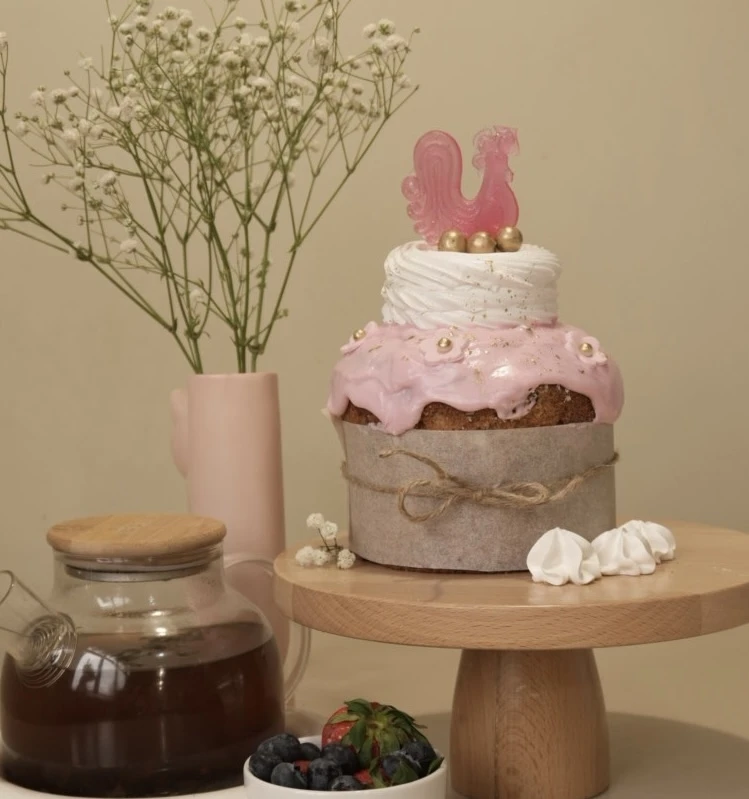 Итальянский кулич с добавлением цукатов, миндаля и грецкого ореха в сочетании с ягодным лёгким муссом